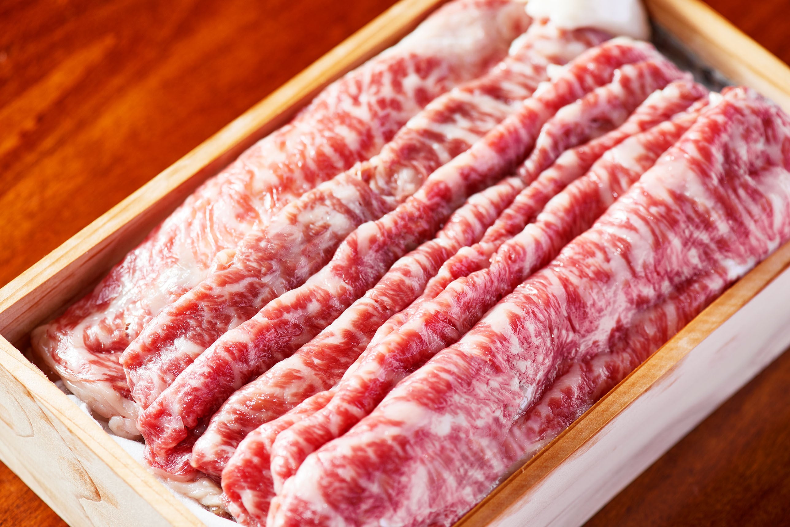 黒毛和種ならではの上質なお肉は、霜の降り具合、旨味、バランスが特に良いとされており、しっとりとした食感と濃厚な旨味が特徴です。厳選された良質な黒毛和種の牛肉を、すき焼き用としてご用意いたしました。